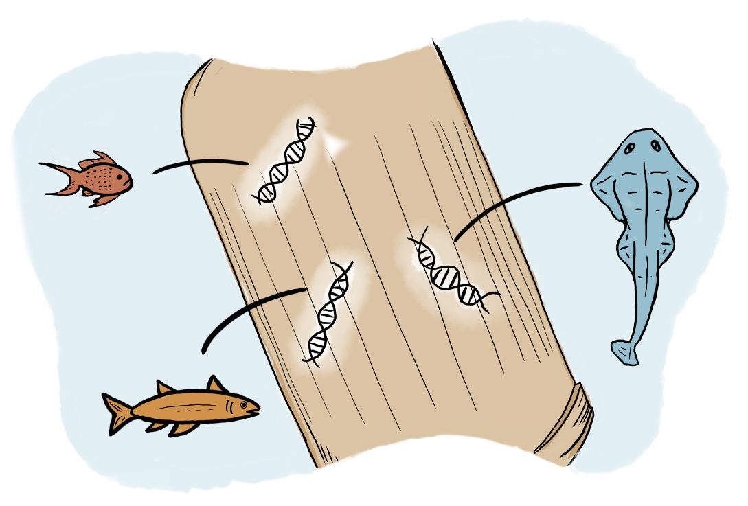 Development of a genetic marker (DNA barcode) that allows the detection of the presence of angelsharks thanks to the DNA present in a seawater sample (i.e. environmental DNA).